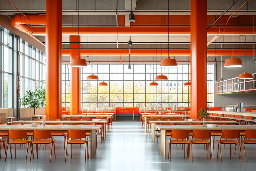 Compact arrangement: use one-piece dining tables and chairs or booths to increase seat density and meet the needs of students for centralized dining.