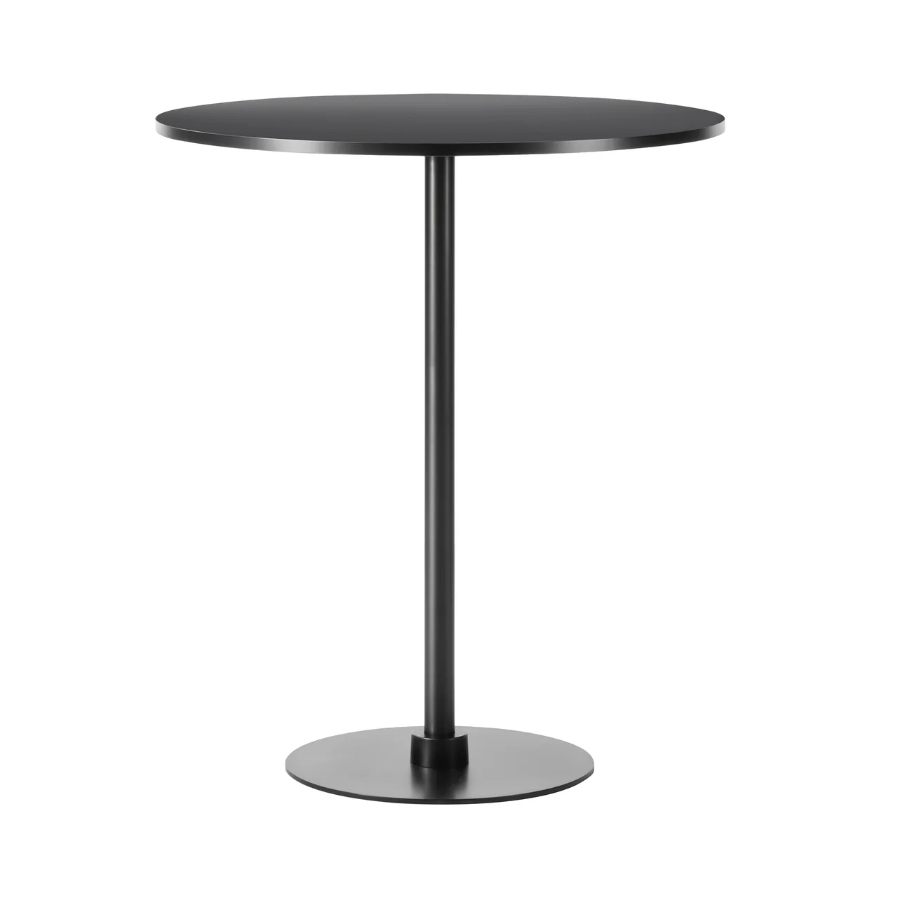 The Table features a stable steel column and disc base with a powder-coated finish. Its compact structure fits well in smaller layouts such as cafés or shared spaces. The tabletop comes in round or rectangular shapes laminate, or white Carrara marble. Available in two heights, it is built to suit a range of uses while maintaining a straightforward, durable form.